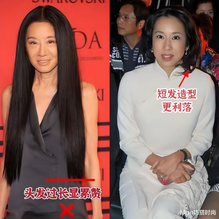 还有长直发,年轻人留这样的发型是因为人家的发量多、发质好,随便一凹就是女神范儿,可年纪大了头发稀疏、发质变差,留这样的发型真的不好看,甚至会贴头皮显得很老气。