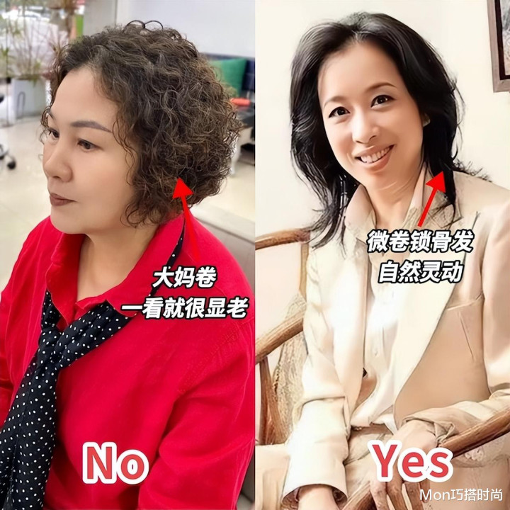 换发型如同换脸,但中年女人换发型的时候可千万不能强行扮嫩,比如扎辫子,年轻小姑娘扎这样的发型是俏皮可爱,五六十岁的女人扎就会显得特别的幼稚,和咱们身上散发的成熟稳重的气质一点不匹配,甚至加重了面部的衰老感。
